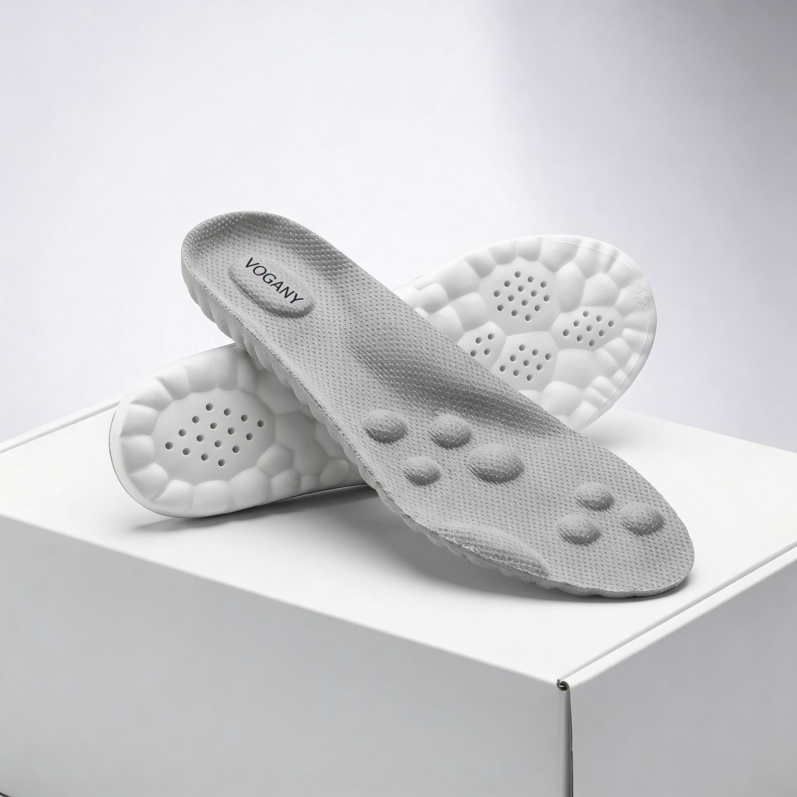 Indlægssålerne Vogany hjælper med at genjustere din fod, reducere trykket på følsomme områder og absorbere stød ved hvert skridt, så du kan bevæge dig naturligt og komfortabelt, dag efter dag.